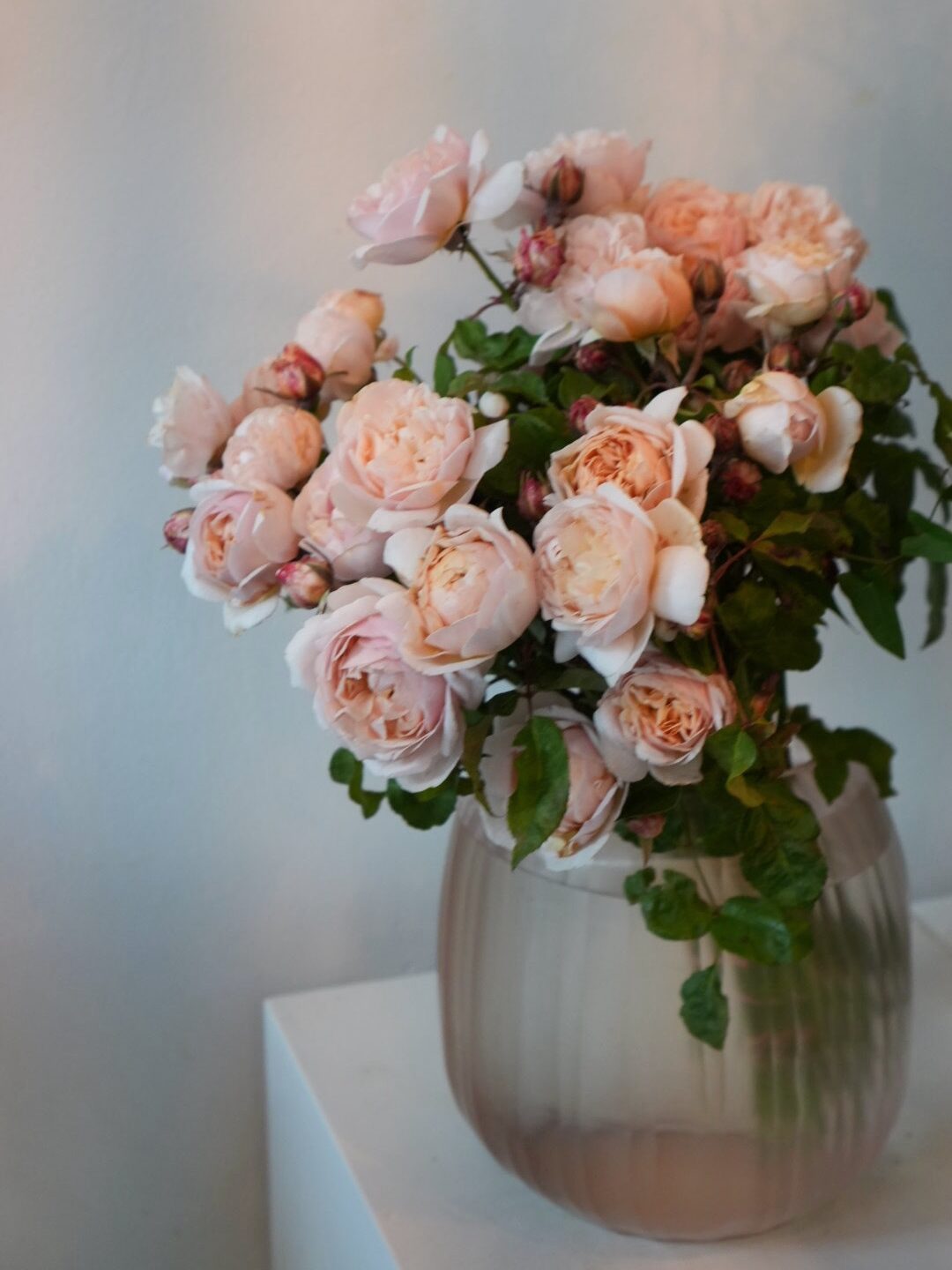同じ方向へ流れるように花をいけるパリスタイルの投げ入れ。